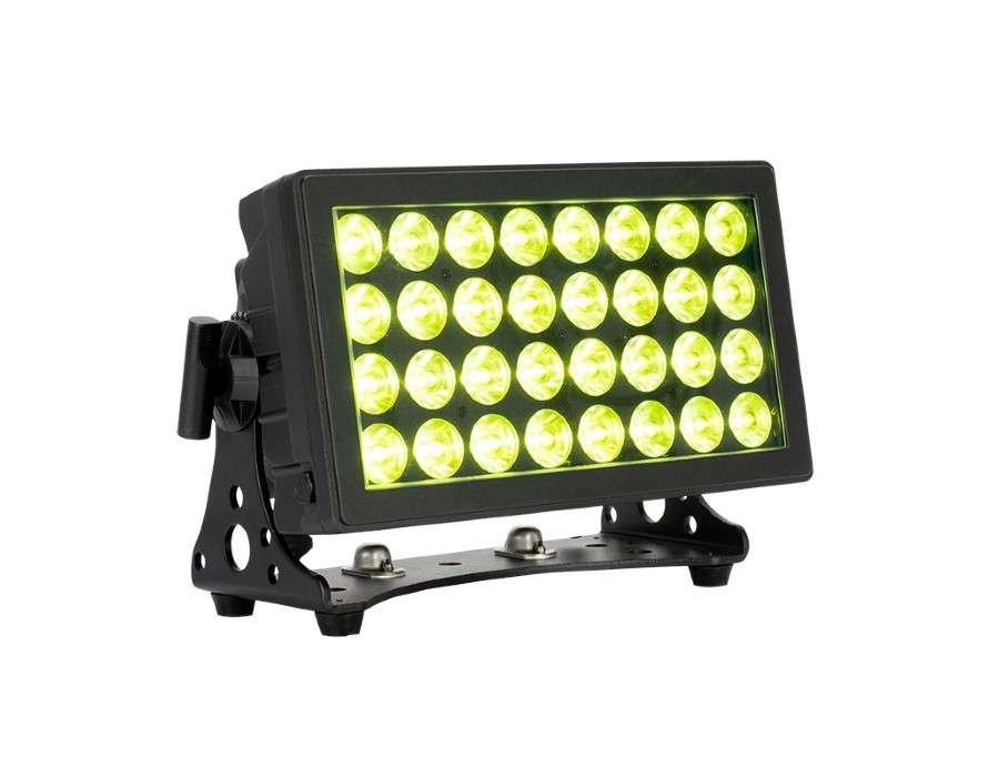 ADJ’s Encore LP32IP is a multi-functional IP65-rated professional wash lighting fixture. It features 32 x 20-Watt 4-in-1 (red, green, blue, lime) color mixing LEDs arranged into 8 individually controllable sections. The fixture offers a concise beam angle of 11-degrees, which can be widened to 25-degrees using the included diffusion filter and magnetic filter frame. Suitable for use both indoors and outdoors in any weather, this versatile fixture can be used as a color wash, blinder, or strobe.