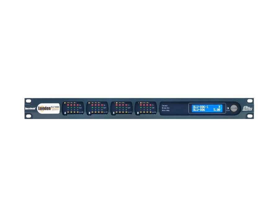 The Soundweb London BLU-326DA offers configurable I/O, Dante / AES67 audio, and a high bandwidth, fault tolerant digital audio bus.