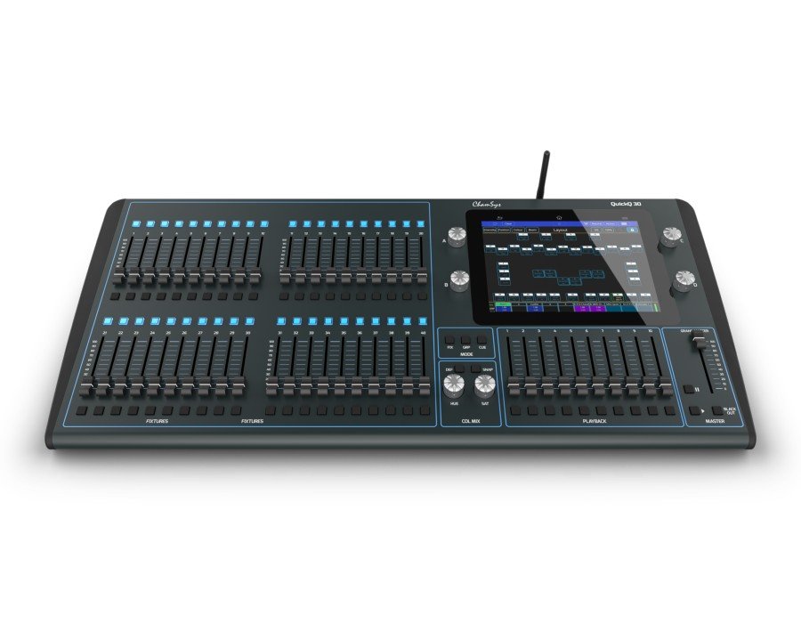 The QuickQ 30 is part of ChamSys QuickQ range of user friendly and affordable lighting control consoles. Is the perfect choice console for control of dimmer, LED colour mixing and moving light fixtures. The console features a large 9.7 inch touch screen utilising a smart phone like interface for setup, programming and playback of your show.