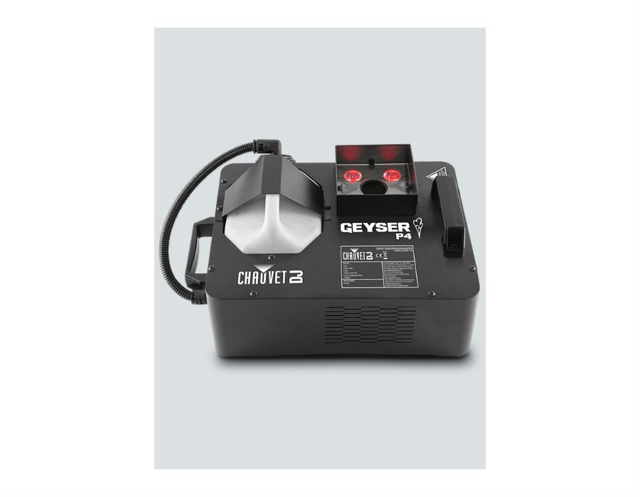 Geyser P5 is a pyrotechnic-like effect without the use of any toxic chemicals, fire or heavy CO2 canisters. Its vertical blasts of fog are illuminated with Penta-colored (RGBA+UV) LEDS for beautiful color mixing. Control the unit from built-in DMX, included Geyser remote control, or manual control.