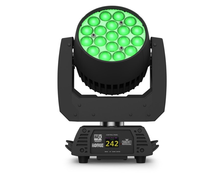 Rogue R2X Wash is a valuable addition to rental and production inventories. Durable and dependable, this moving wash workhorse produces a bright, powerful light and offers five zones of LED control to pixel map its 19 (25 W) RGBW quad-LEDs.