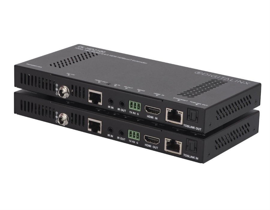 The DigitaLinx DL-HD2100 can transport HDMI data rates up to 18Gbps up to 100 meters. The system enables high data rates by utilizing visual lossless compression at a 2:1 data compression rate when the signal surpasses 10Gbps, anything under 10Gbps will never be compressed. Supports static HDR (HDR10) only when data rate exceeds 18Gbps, supports dynamic HDR (HDR10+ / Dolby Vision) when data rate is 10Gbps or less.