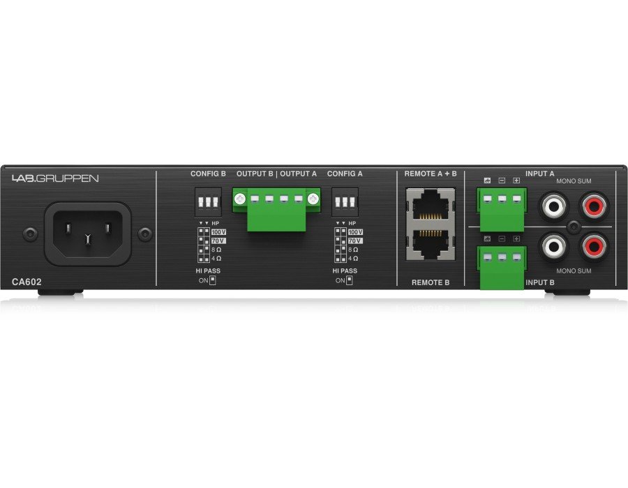 The CA602 2 x 60-Watt Commercial Amplifier provides the perfect solution for commercial and industrial applications requiring great sounding distributed audio coupled with power conservation and reduced operating expense. Equipped with 2 independent audio channels, the CA602 provide amplification to 2 separate zones. Capable of delivering high-quality sound over both Low-Z (4/8 Ohm) and High-Z (70/100 V) loudspeaker configurations offering extreme flexibility on every channel. The CA602 is easy to install and operate – even for non-technical personnel. Simply put, the CA602 is ideal-suited for bars & restaurants, retail destinations, hotels, corporate, education or other venues needing background music and/or a public address system.