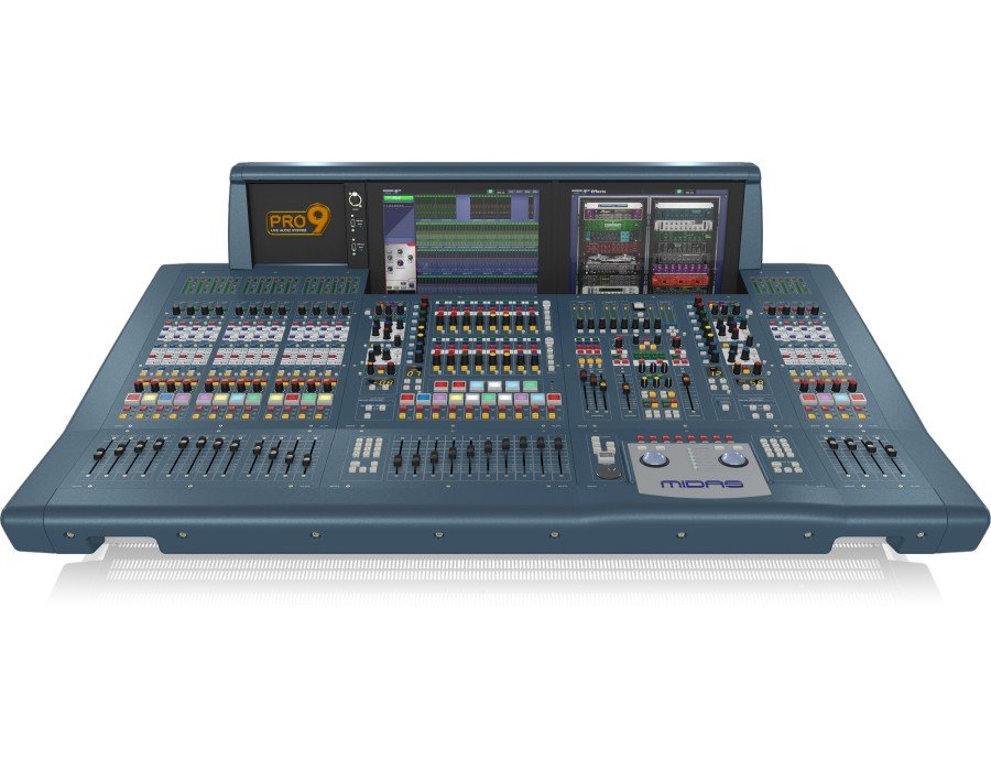 The Midas PRO Series has become established as the industry standard on live concert tours and the road-proven PRO9 featuring 88 simultaneous input channels and 35 time-aligned and phase-coherent mix buses, shares the familiarity of a common user interface and workflow with PRO3 and PRO6. Like all PRO Series consoles, the PRO9 features managed latency and 40 bit floating point processing precision. PRO9 sets the standard of performance in high-profile live sound applications and is a truly impressive digital control surface for the engineer whose very livelihood depends on both unparalleled functionality and reliability.