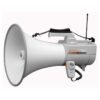 The ER-604W is a compact, lightweight shoulder-type megaphone with whistle signal. It’s close-talking microphone has a handy-to-operate volume control and press-to-talk switch. External microphone inputs on the unit’s rear panel can accept an optional microphone or a headset microphone for hands-free use. In addition, an AUX (auxiliary) input can accept a CD, MD, or cassette player.