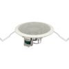 The F-2352SC is a 2-way, flush-mounted ceiling speaker that offers a full frequency range and high-quality sound output. Use of optional mounting hardware permits versatile mounting to match a wide range of applications and installation locations. The F-2352SC rear-open type 2-way speaker system employs a speaker element that is designed to provide a wide frequency range. The wide-dispersion flush-mount ceiling speaker design uses unique acoustic construction to realize a wide area of coverage. Uniform sound output levels are achievable not only directly under the speaker, but also over a wide radius. Because the speaker provides both low- and high-impedance operating capability, it can be used in many different applications. A front panel-mounted input selector switch permits easy verification and change of current impedance/power settings, even after installation. It can be quickly and accurately mounted to ceilings and the rotating front grille can be installed/removed quickly and easily. An attractive exterior design specially created by an interior designer blends naturally with any architectural space. Use of the optional HY-BC1 Back Can permits exposed speaker installation.