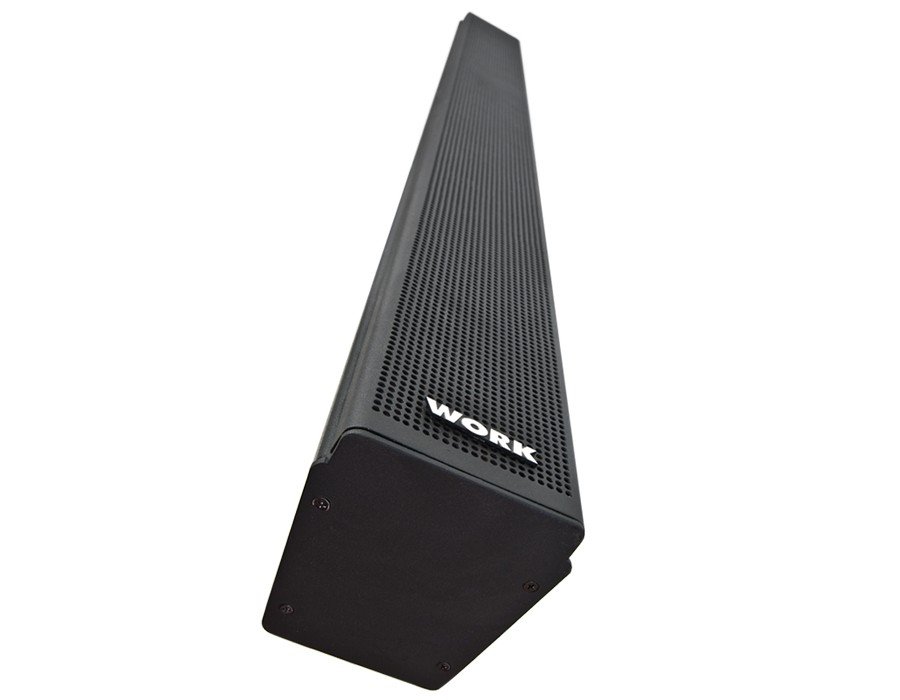 The narrow extruded aluminium enclosure has been designed for a seamless visual integration in every venue and is available in black or white finish. The grille is also made of aluminium and internally covered with a protective water repellent fabric which prevents splashed water and dust from damaging the transducers, featuring thereby an IP 65 protection rating. A wall mounting accessory is included allowing the column to be aimed up to +/- 90° sideways and from 0° to 10° downwards or upwards in two degrees steps.
